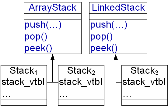 public class LinkedStack implements Stack { ... }